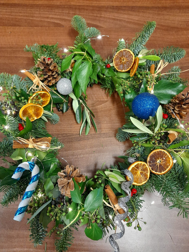 The workshop includes everything you need to make a beautiful Christmas Wreath. Lights are an optional £2.